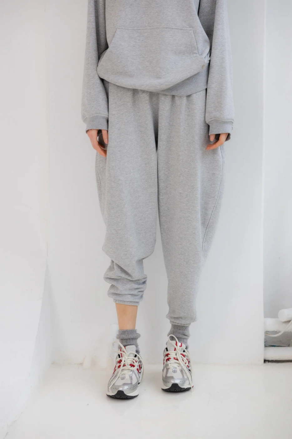 Wybierz szare klasyki - spodnie dresowe wykonane z wysokiej jakości bawełny z pętelką. Materiał jest miękki, przewiewny i przyjemny w dotyku, co zapewnia maksymalny komfort noszenia przez cały dzień.