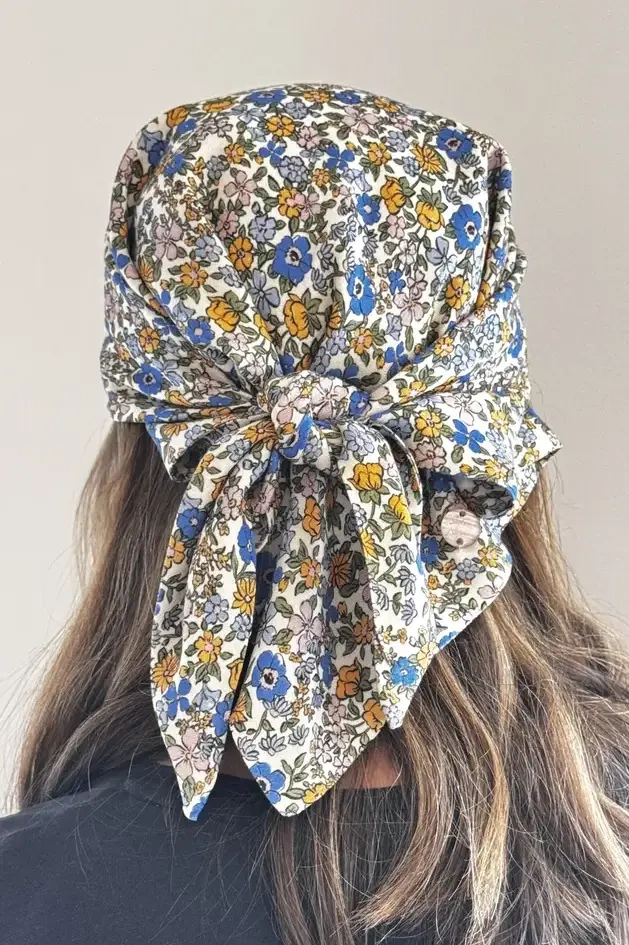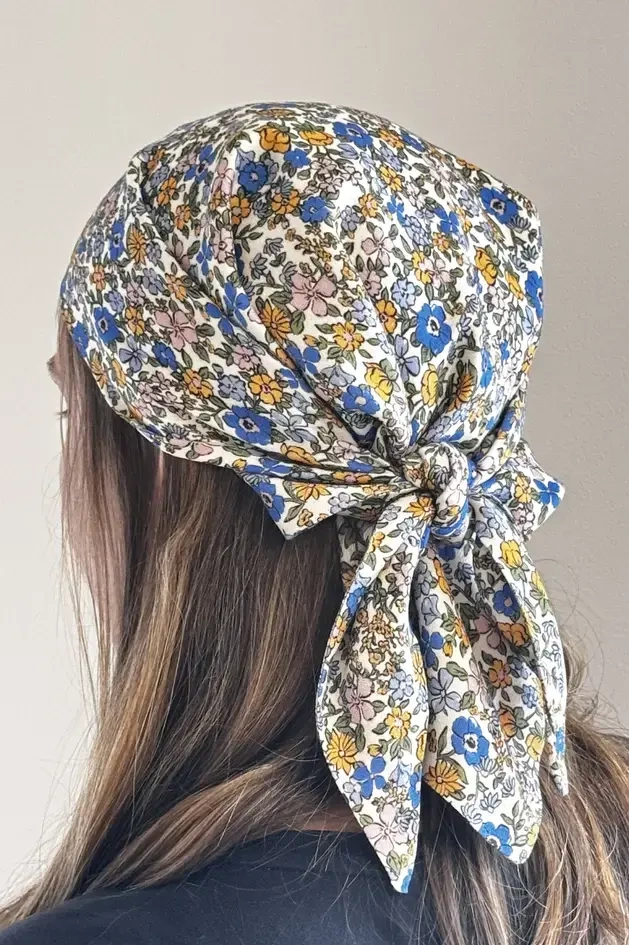 Uniwersalna i stylowa apaszka o kwiatowym wzorze, którą możesz nosić klasycznie na głowie lub jako letni top wiązany pod pachami!