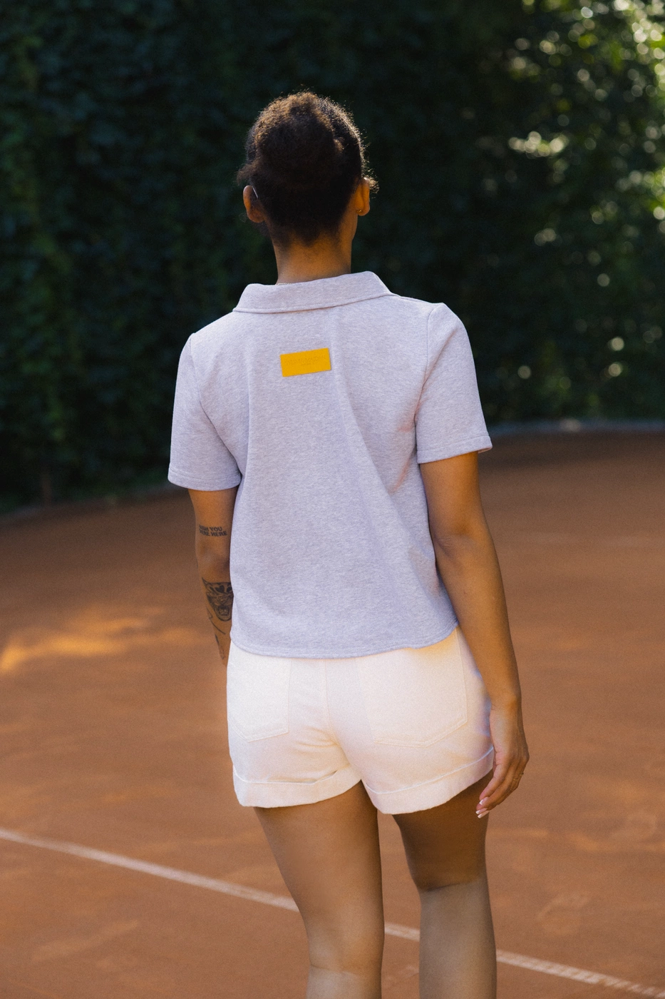 CROPPED POLO MELANGE SZARY