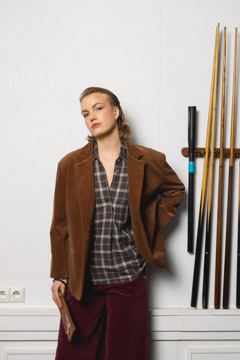 Lniano-wiskozowa koszula, która wygląda jak „slow life”. Miękka, przewiewna, z tyłu detal ze skóry z logo – bo kto powiedział, że minimalizm nie może mieć charakteru? Idealna do czerwonego wina i bordowych spodni.