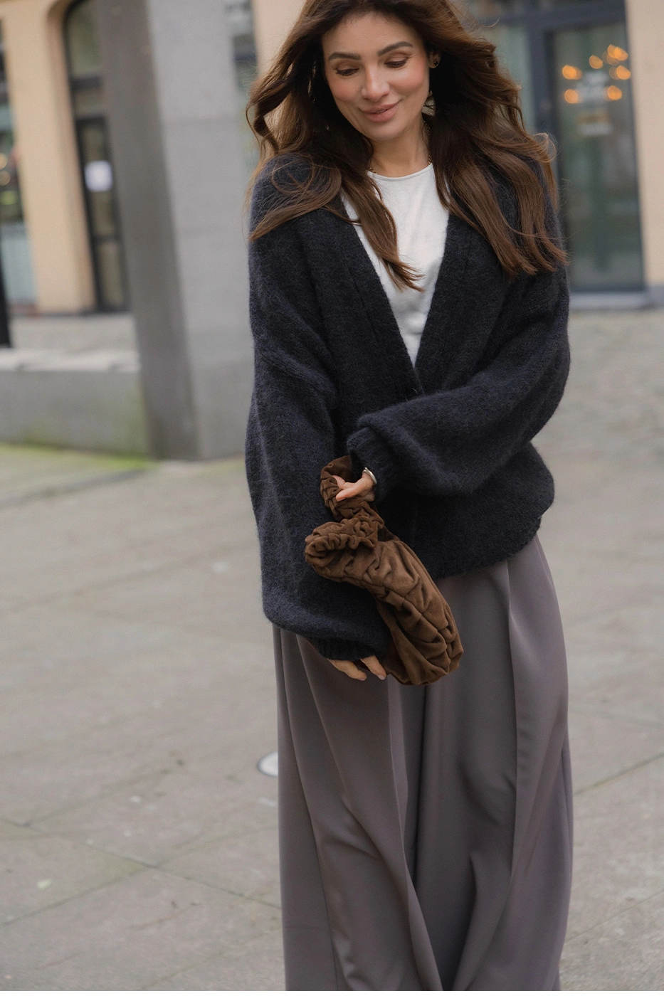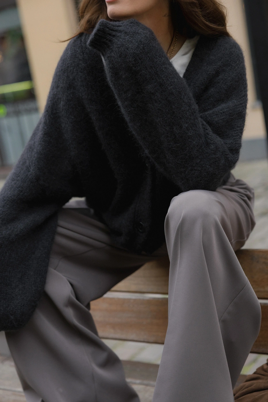 Ten wyjątkowo miękki, otulający sweter został wykonany z wysokiej jakości dzianiny z domieszką alpaki i wełny, dzięki czemu zapewnia nie tylko ciepło, ale też niezwykły komfort noszenia. Jego puszysta, lekko „mgiełkowa” faktura sprawia, że stylizacja zyskuje modowy charakter, a klasyczny krój z delikatnie obniżoną linią ramion gwarantuje swobodę i łatwość łączenia z ulubionymi elementami garderoby. Z tyłu aplikacja niedźwiadka.