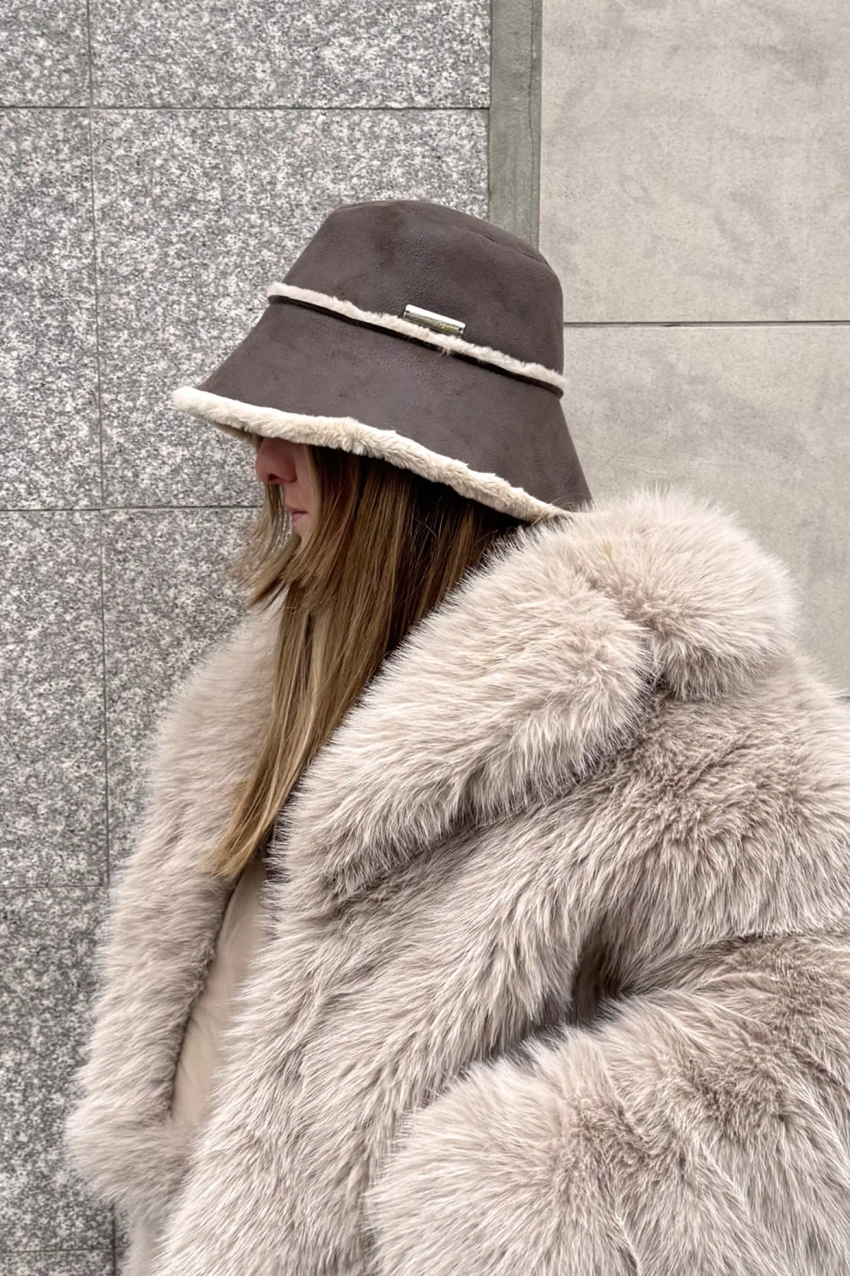 Ten model przenosi charakterystyczny kożuszkowy akcent ORION do formy modowego dodatku. Miękka, przyjemna w dotyku faktura oraz klasyczny fason bucket hat tworzą spójną całość, która idealnie uzupełnia kożuchy z tej samej linii, ale równie dobrze sprawdzi się jako samodzielny statement piece.