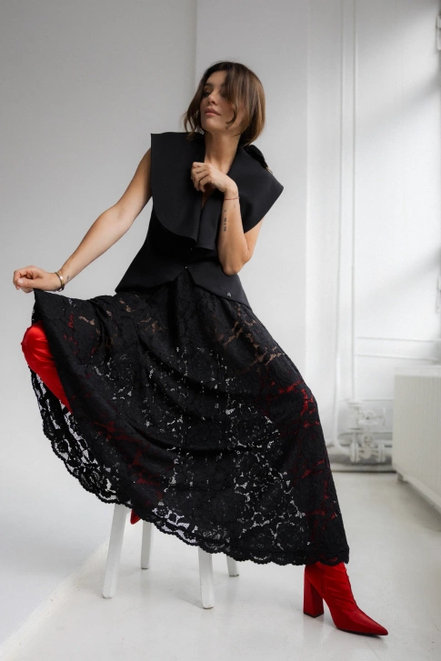 SPÓDNICA BLACK LACE MAXI SKIRT
